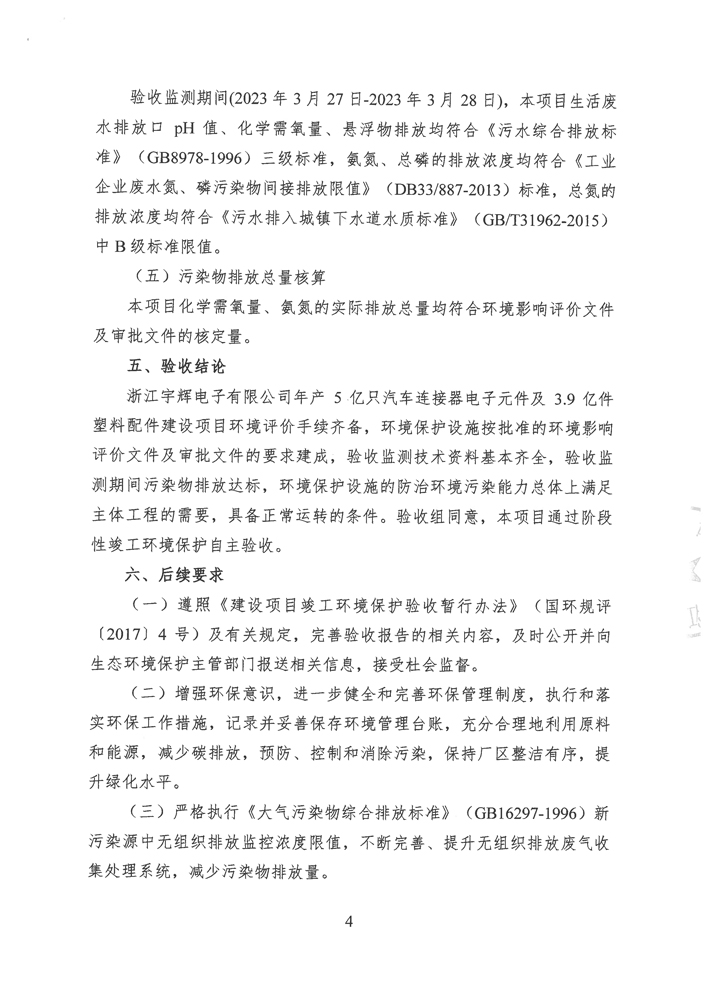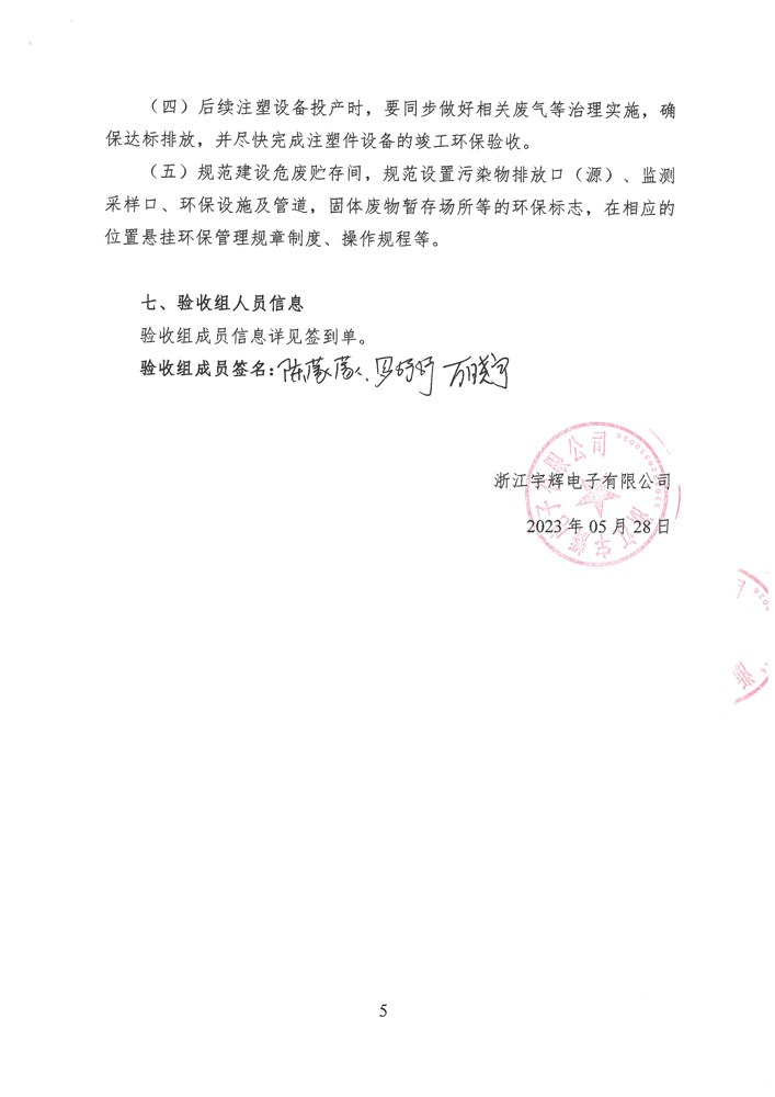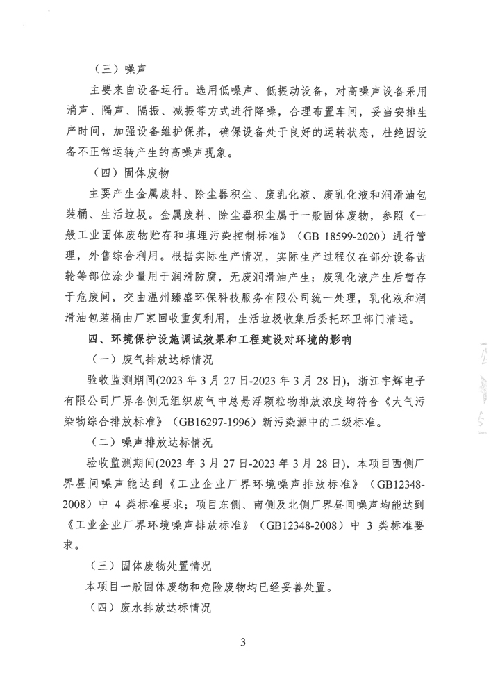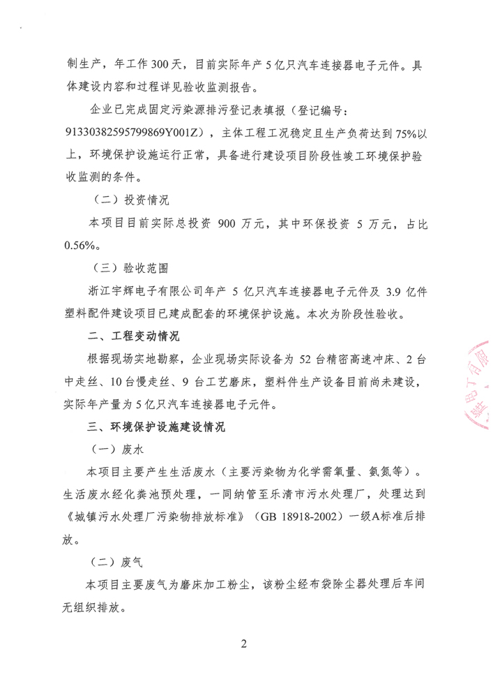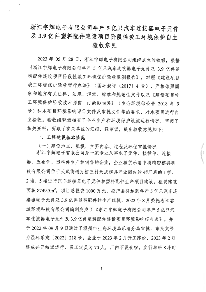 浙江宇輝電子有限公司環(huán)境保護(hù)自主驗(yàn)收意見